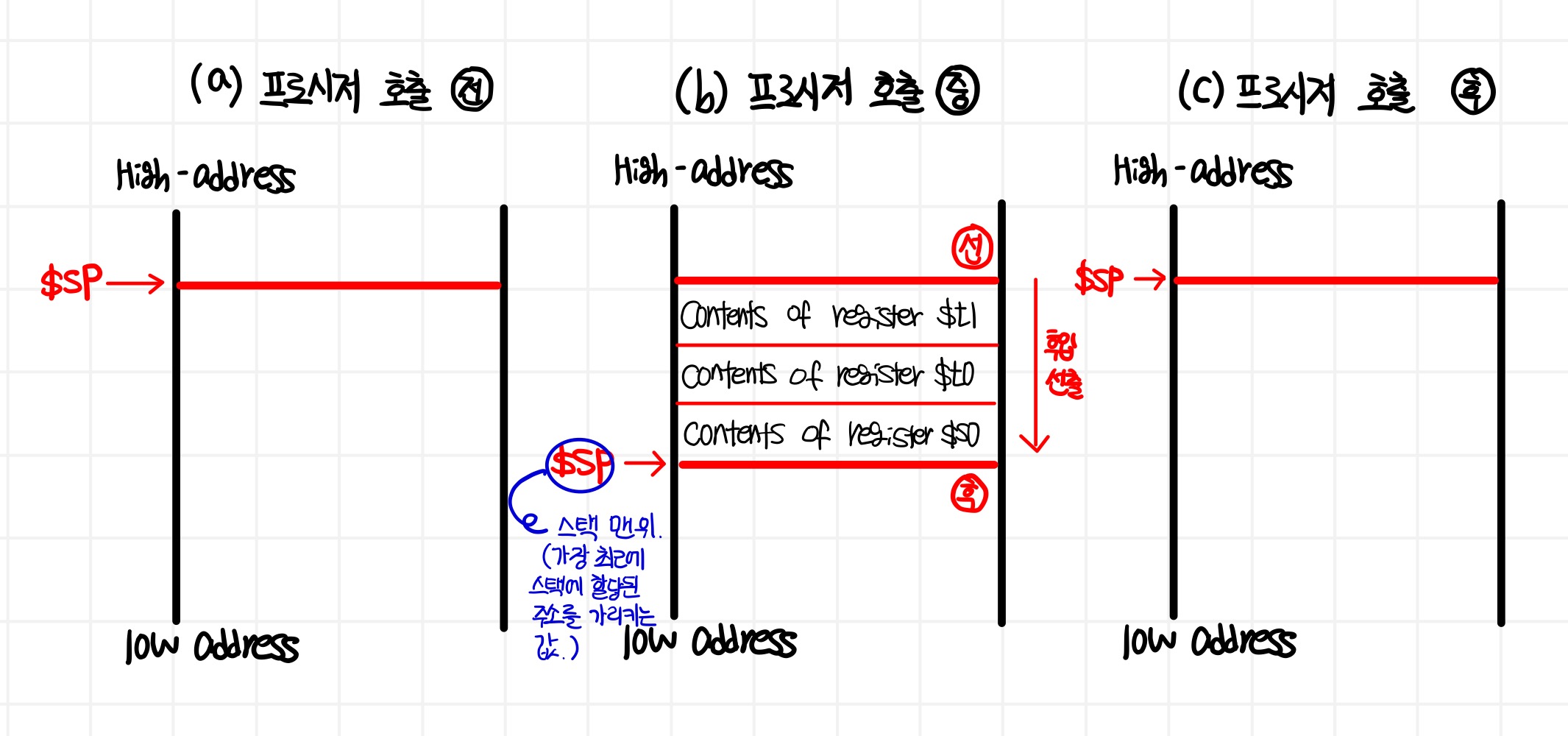 [ MIPS는 레지스터를 할당할 뿐만 아니라, 프로시저를 위한 명령어도 제공함 ]