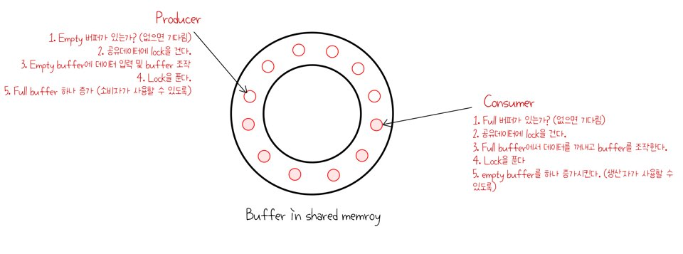 - 이와 같이 데이터를 읽어오고 다시 원래 위치에 새로운 데이터를 반영하는 과정에서, Process Synchronization이 발생한다.