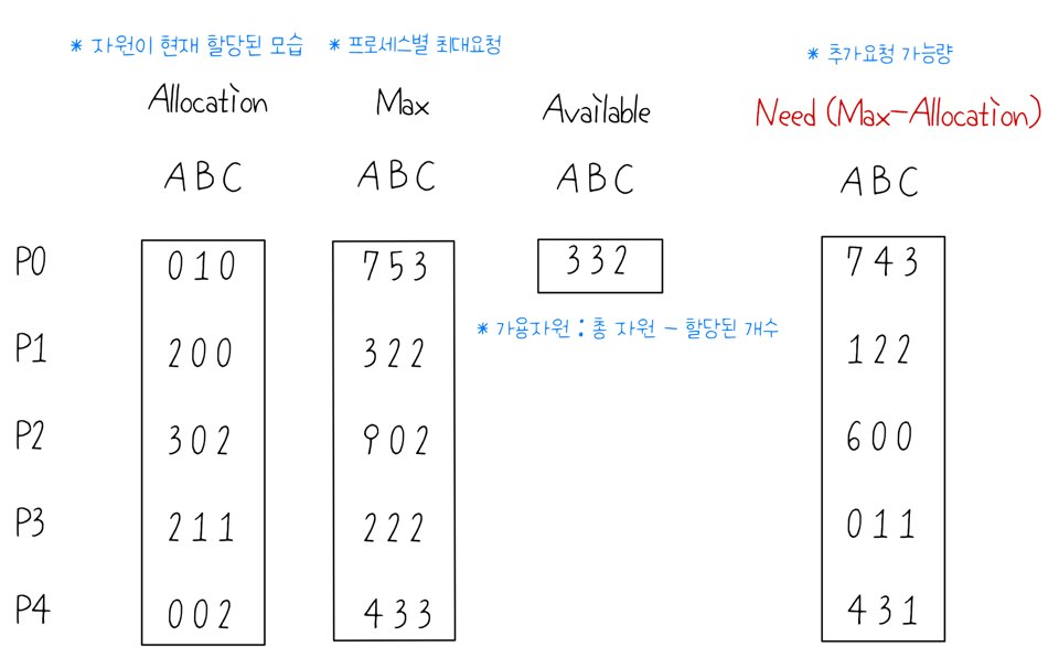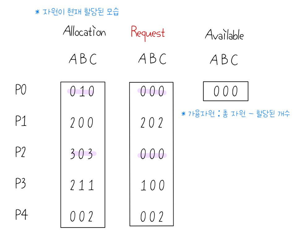 * Deadlock이 발생했는지는, 보통 자원할당 그래프라는 것을 그려서 알아볼 수 있다.