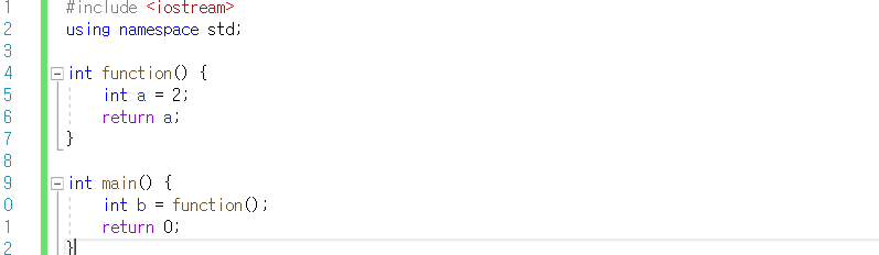 따라서 main에 있는 int b = function(); 이 문장은 아래의 뜻과 같다.