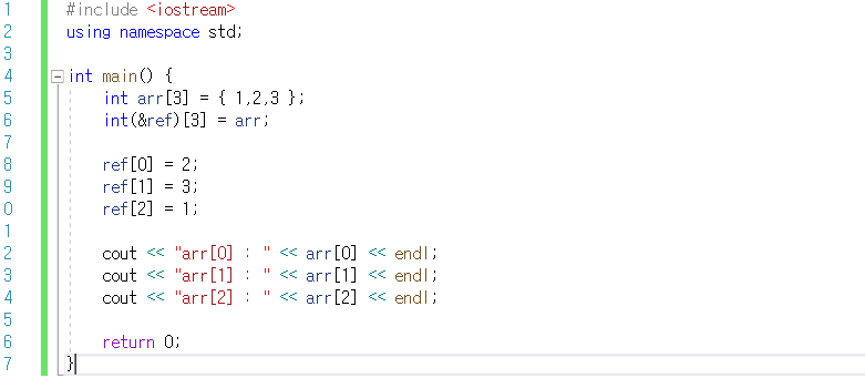 int & ref = a; // 참조자로 반환하므로, ref가 a와 같은 의미가 됨. |