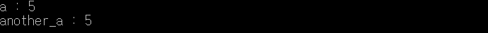 - another_a = 5; // another_a는 a와 같은 것이므로, a의 값도 같이 변경된 것을 볼 수 있다.