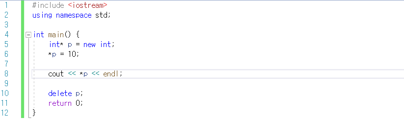 - int *p = new int; // int 크기의 공간을 할당하여, 그 주소값을 p에 집어넣는다.