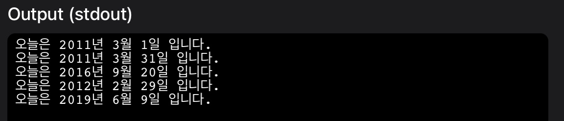 day.ShowDate(); // 제대로 인스턴스가 초기화되었는지 확인