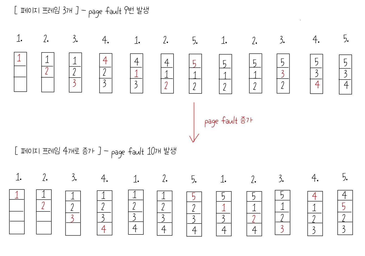 - 그러나 오히려 이 알고리즘을 쓰면 훨씬 성능이 안좋아지는, FIFO Anomaly 상태가 발생할 수 있다.