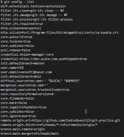 # 이후 다시 git config -e를 하면 vs code에서 열림