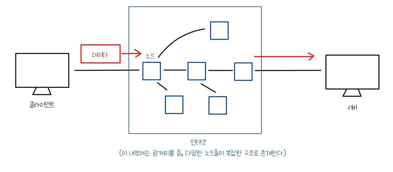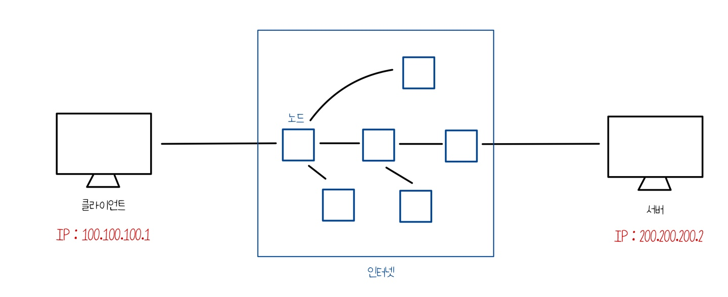 이렇게 굉장히 복잡한 인터넷 망을, 클라이언트에서 서버로 안전하게 전달할 수 있도록 하는 규칙이 있는데, 이를 프로토콜(IP, TCP/UDP ...)이라고 한다.