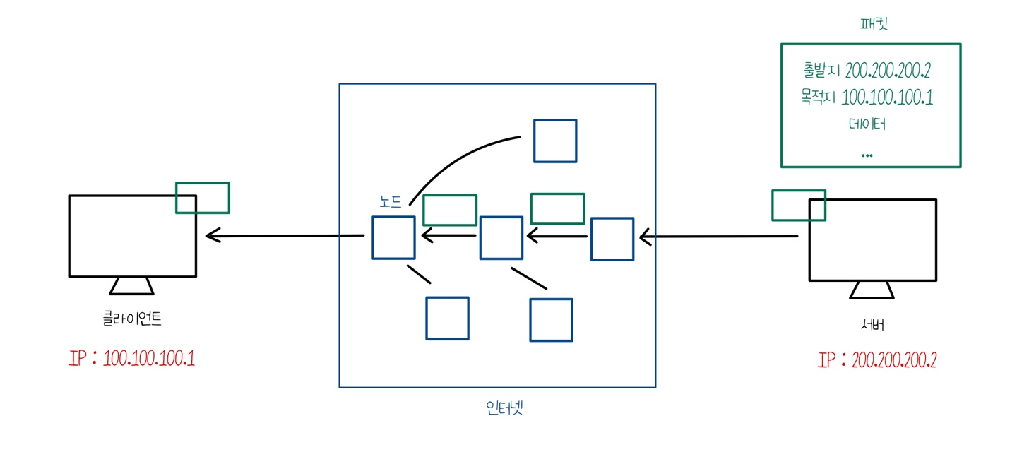 IP는 주소를 의미한다. 즉, 각각의 컴퓨터에 부여되는 것이며, 각 클라이언트/서버는 이를 통해 원하는 IP 주소(IP Address)에, 패킷(Packet)이라는 통신 단위로 데이터를 전달할 수 있게 된다.
