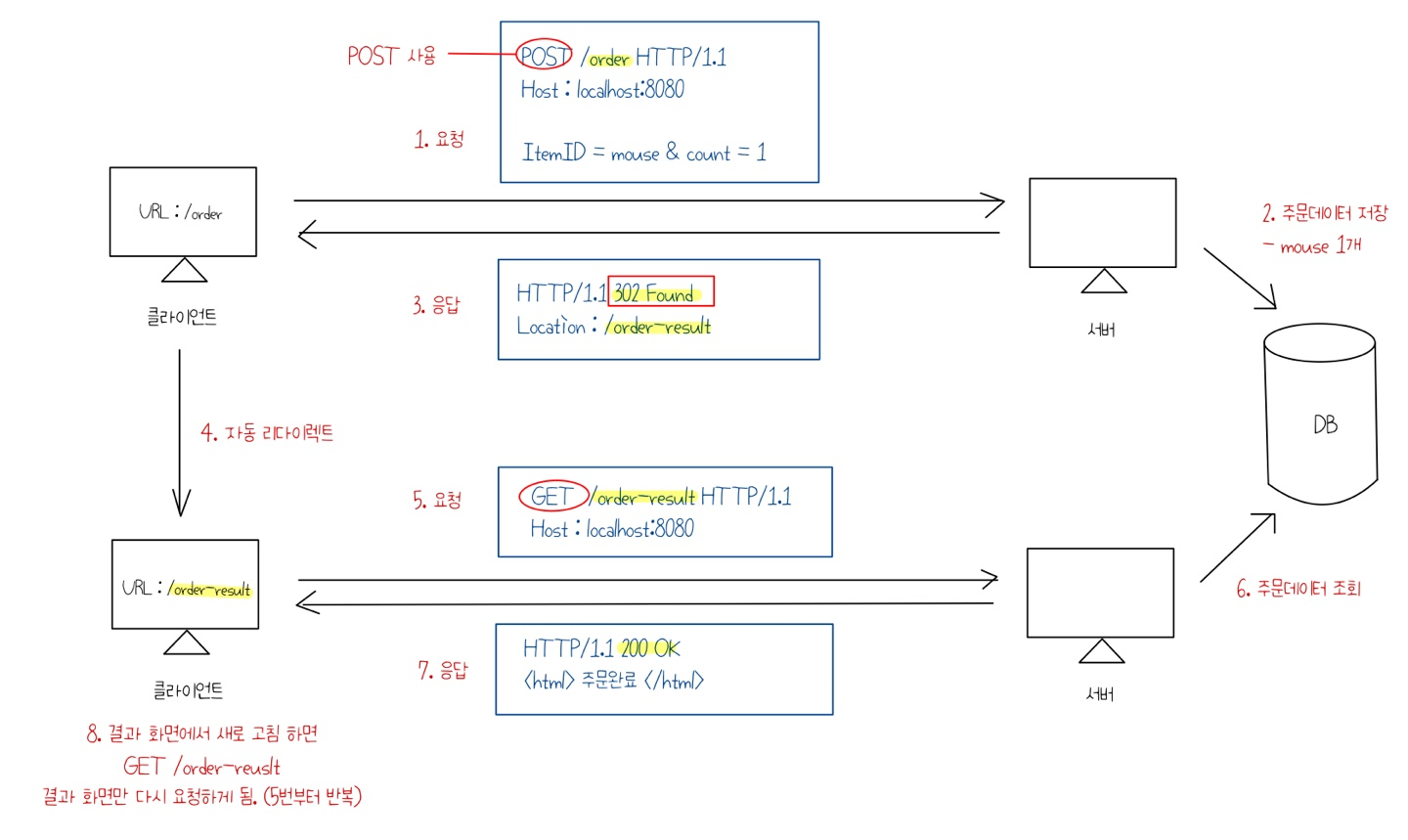 - POST로 주문 후, HTTP 상태코드 302, 303 등을 사용하여, 리다이렉트를 통한 GET으로 주문 결과 화면을 요청하게 한다. (물론 서버측에서도 이에 대한 안전장치를 마련하는 것이 중요함)