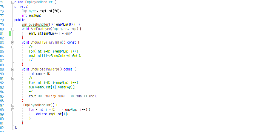 EmployeeHandler() :empNum(0) { } // 고용인 handler 생성자
