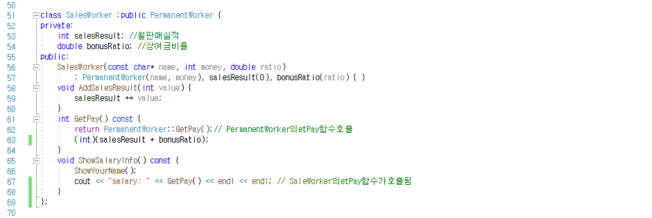 class SalesWorker : public PermanentWorker { // 영업직 클래스