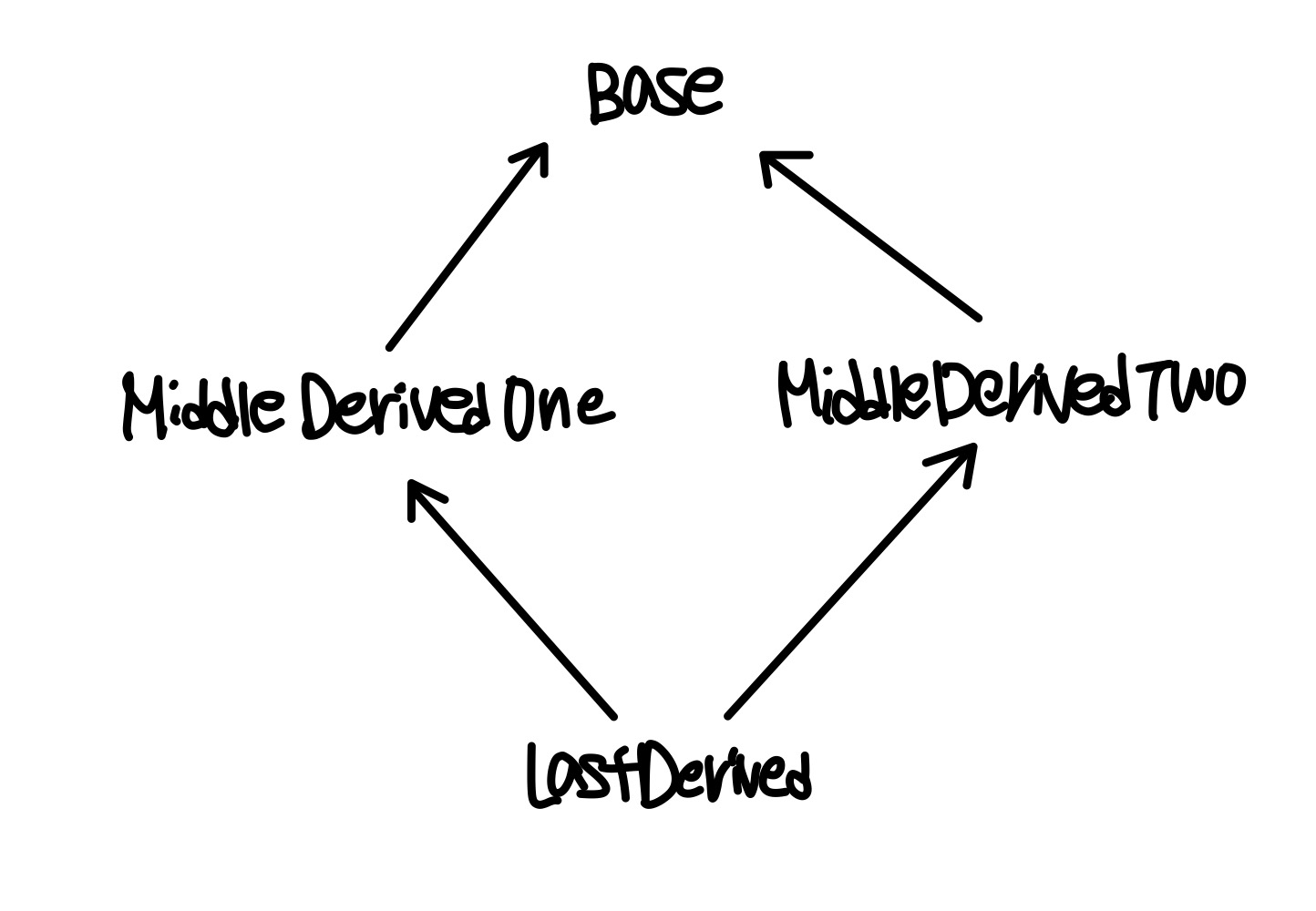 class LastDerived : public MiddleDerivedOne, public MiddleDerivedTwo{