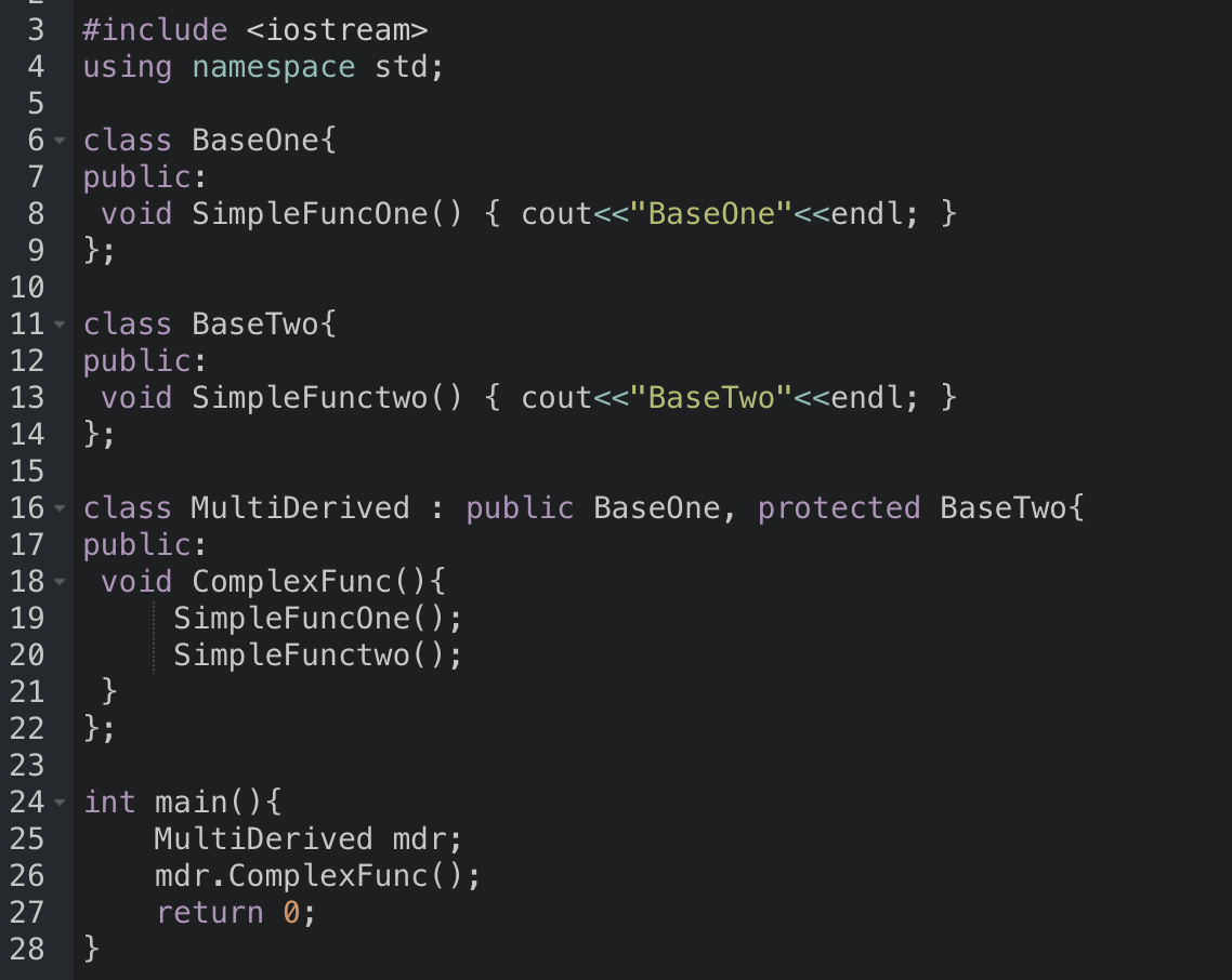 class MultiDerived : public BaseOne, protected BaseTwo{