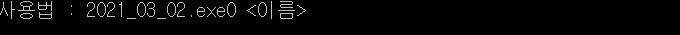 - 2021_03_02.exe는 실행할 때 매개변수를 요구한다. 만약 '2021_03_02.exe'로만 실행하면 사용법에 대한 설명을 출력하고 종료한다.