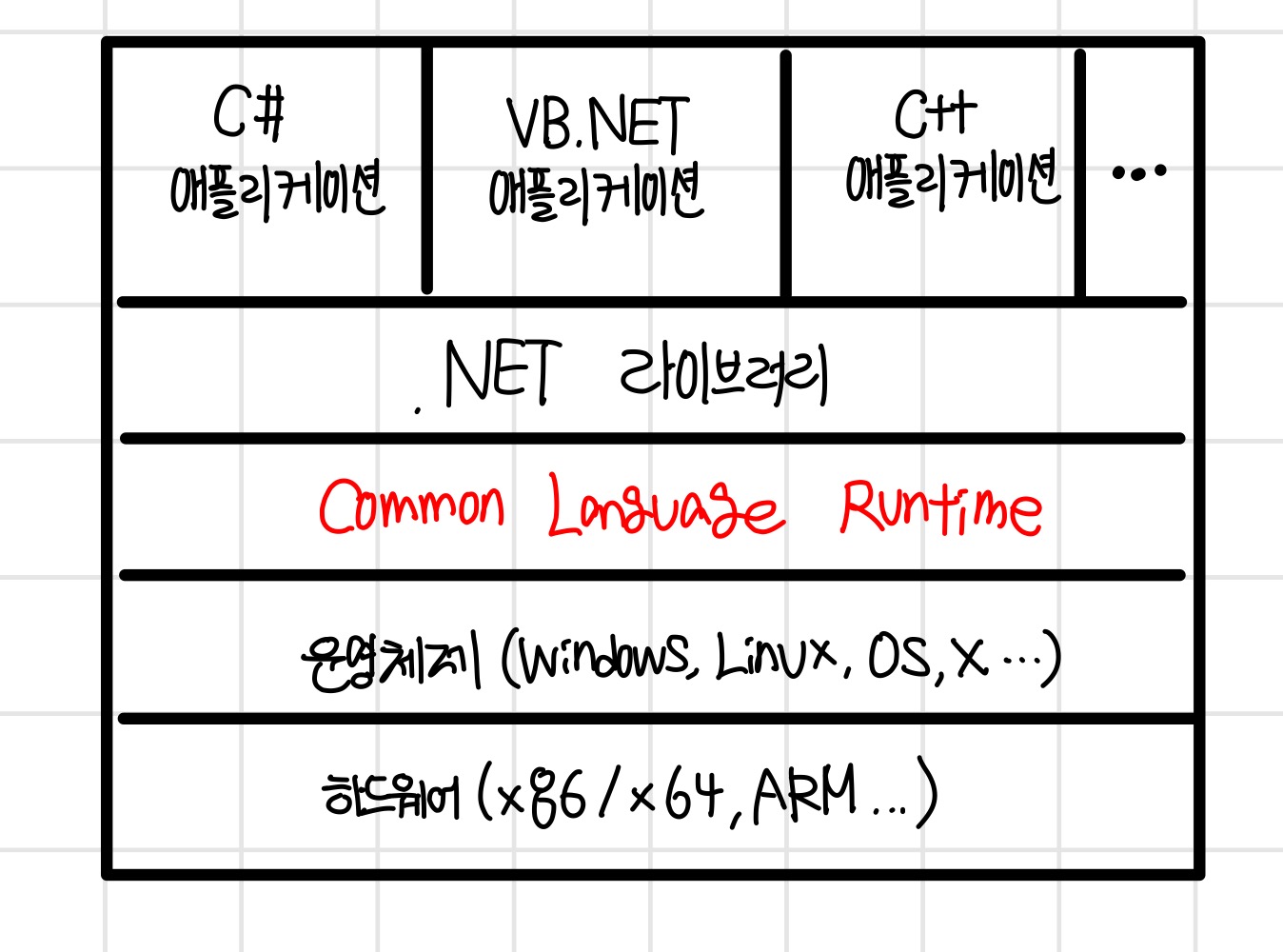 - CLR은 .NET 라이브러리와 함께 OS 위에 설치된다.