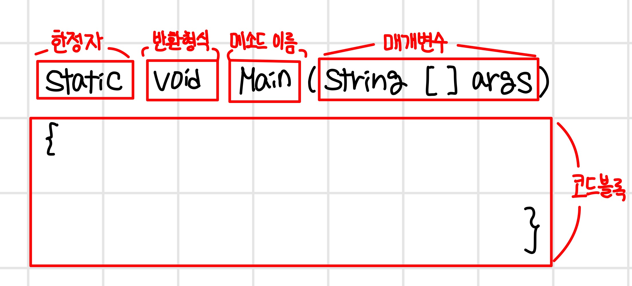 - 메소드가 실행될 때, 실행할 세부 코드를 담는다.