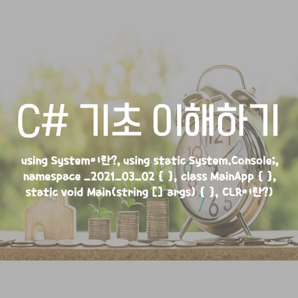 (using System이란?, using static System.Console;, namespace _2021_03_02 { }, class MainApp { }, static void Main(string [] args) { }, CLR이란?)