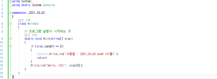 Console.WriteLine("사용법 2021_03_02.exe0 <이름");