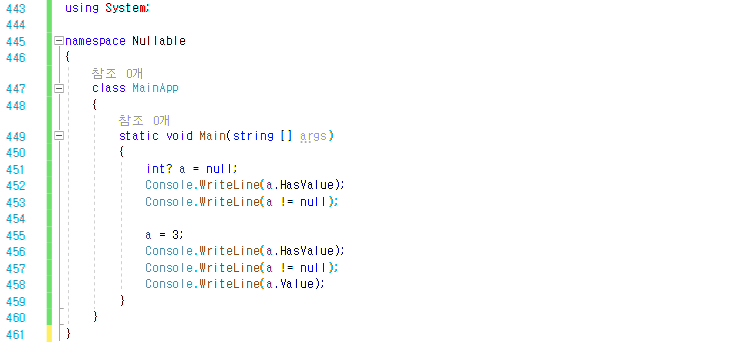 ex) Nullable 형식을 테스트하는 예제 프로그램