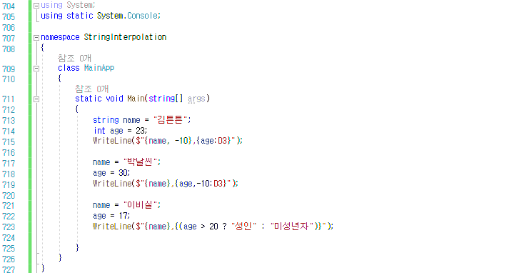 - 문자열 보간이, string.Format()메소드와 다른 점