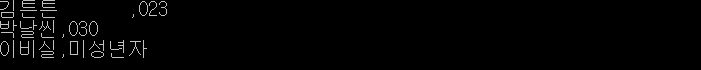 - 그러나 항상 이렇게 일정한 간격으로 콤마(,)를 사용해 구분되어 있지는 않다. 따라서 그럴 때는 1. 문자열 탐색을 이용해서 잘라낼 부분을 자른 뒤, SubString() 메소드를 이용해 하나씩 잘라내면 된다.