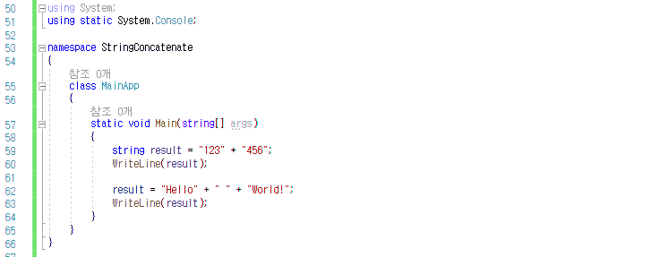 | int ?a = null; // [ Nullablee type ] 데이터타입 + ? 변수명 : null을 가질 수 없는 데이터타입을 null을 가질 수 있는 타입으로 만든 것 Console.WriteLine($"{a ?? 0}"); // a가 null이기 때문에, 그대로 0(null) 출력 a = 99; Console.WriteLIne($"{a ?? 0}"); // a가 null이 아니기 때문에, 오른쪽에 있는 첨자 {0} 즉, 99를 출력한다. |