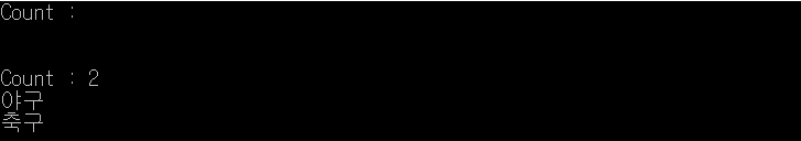 a?.Add("야구); // a는 null이 아니므로, . 뒤의 Add("야구") 출력