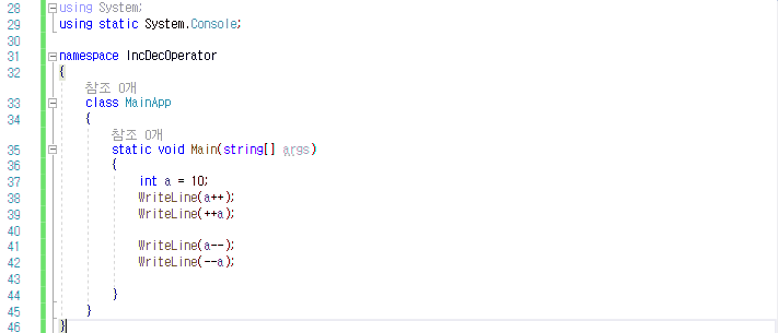 - 감소연산자(--) : 피연산자의 값을 1 감소시킨다.