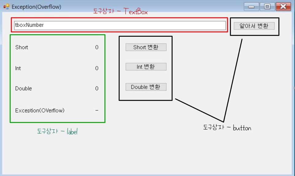 // 예외값을 가지고와서 문자형태로 바꾼후 lblExcpetion이라는 부분에 다시 뿌려달라