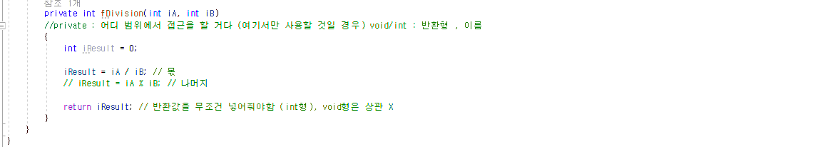 private int fDivision(int iA, int iB) // fDivision 메소드