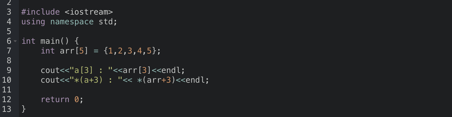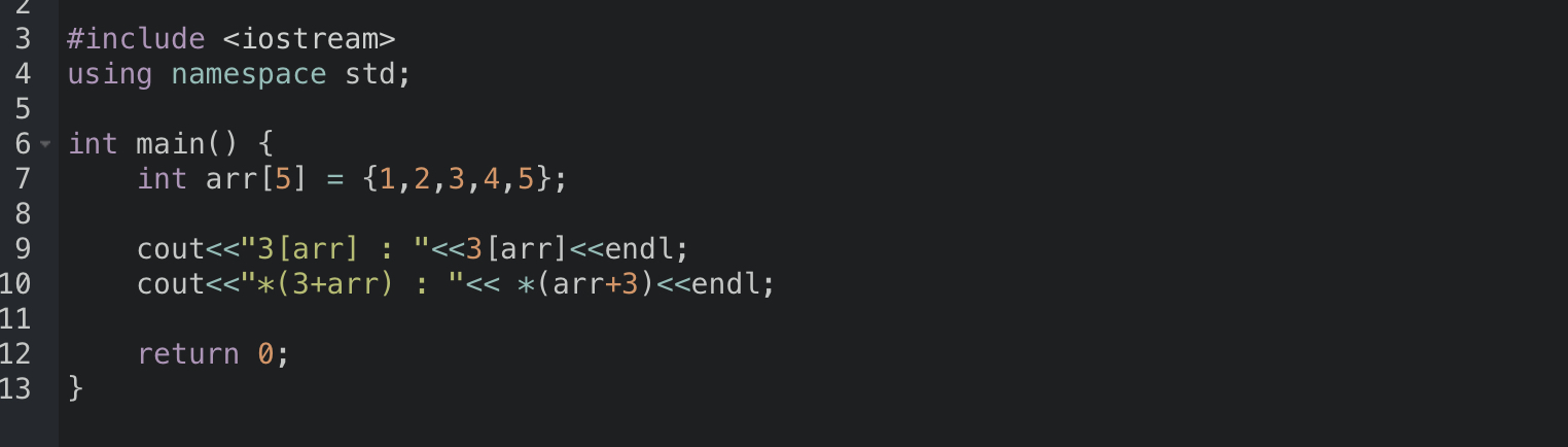 3[arr] = *(3+arr) = *(arr+3), 이 또한 실행이 가능하다.
