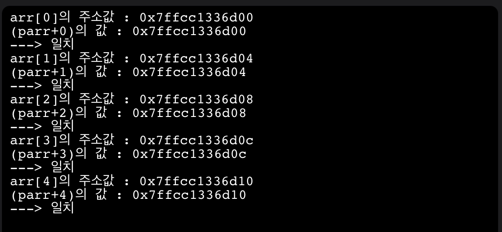parr이 int형이므로, +i를 하면, 주소값에는 4*i씩 더해지는 것이다.