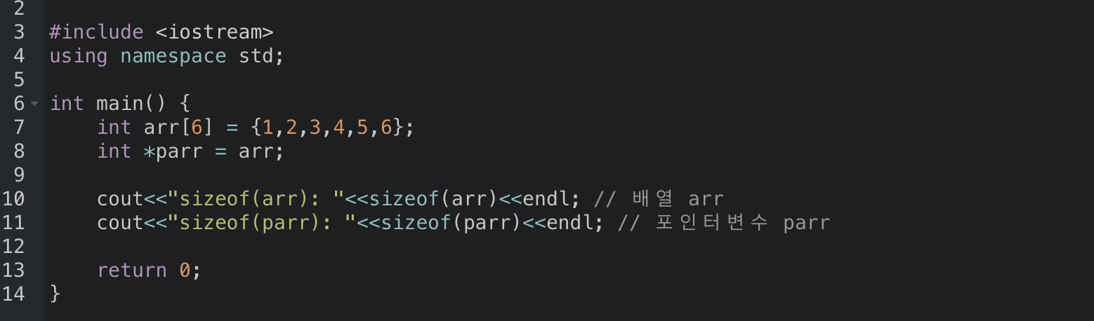 sizeof(parr) : 배열 자체의 크기가 아닌, 그냥 포인터의 크기를 알려준다.